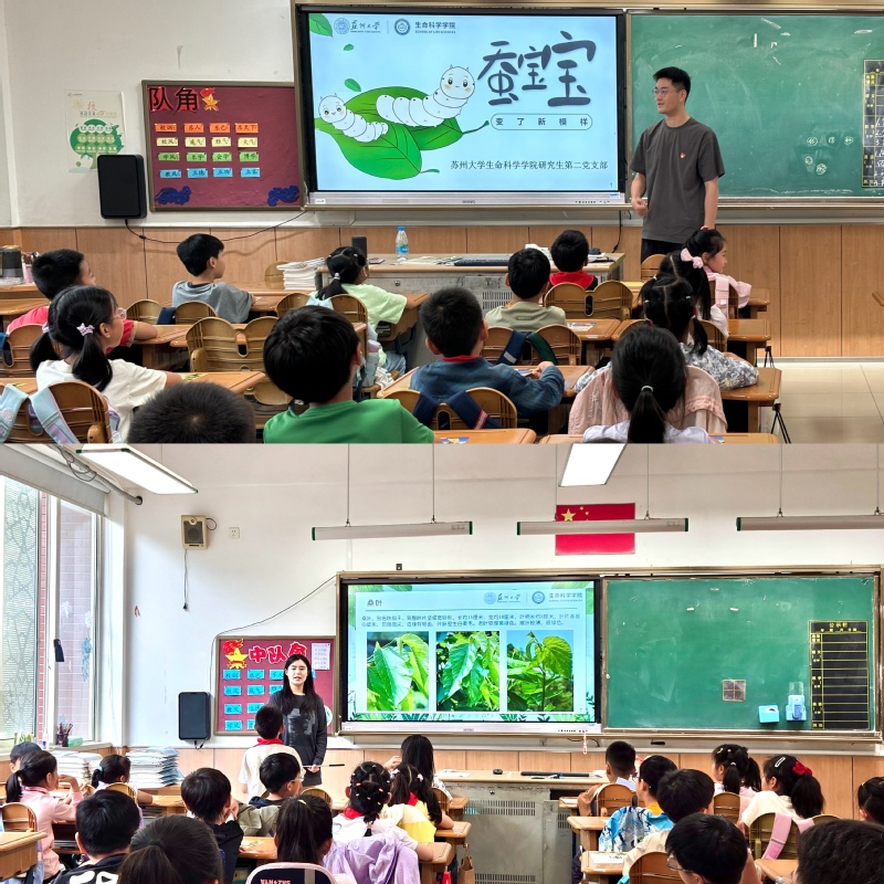 为深化科普教育工作,让生命科学的种子在青少年心中生根发芽。9月30日,我院研究生第二党支部与研究生会组成科普宣传小队,走进苏州工业园区金鸡湖小学(石港路校区),为孩子们带来了一场蚕桑科学的奇妙之旅。