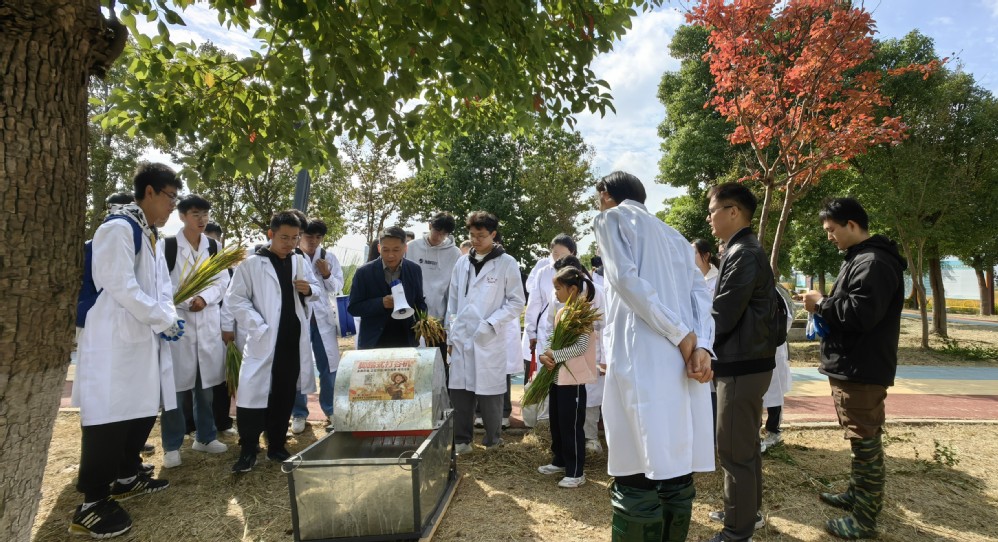 同学们亲身参与水稻收割与脱粒,在汗水中体会粮食来之不易,也在丰收喜悦中感受科研成果的实在价值。劳作间隙的田间交流,更将劳动体验升华为成长思考。金黄的穗粒不仅象征专业特色,更承载着师生共进、耕耘成长的陪伴精神。