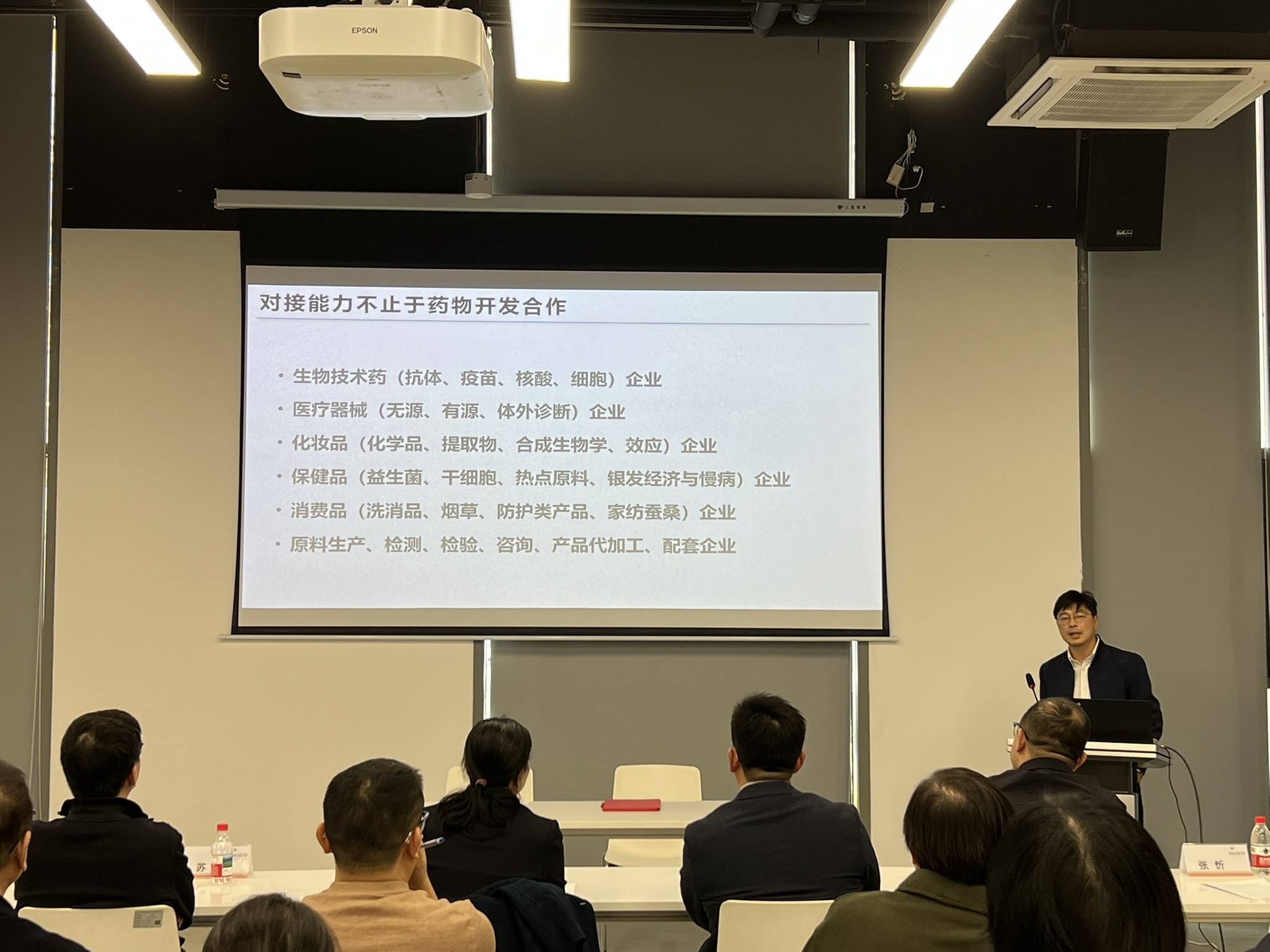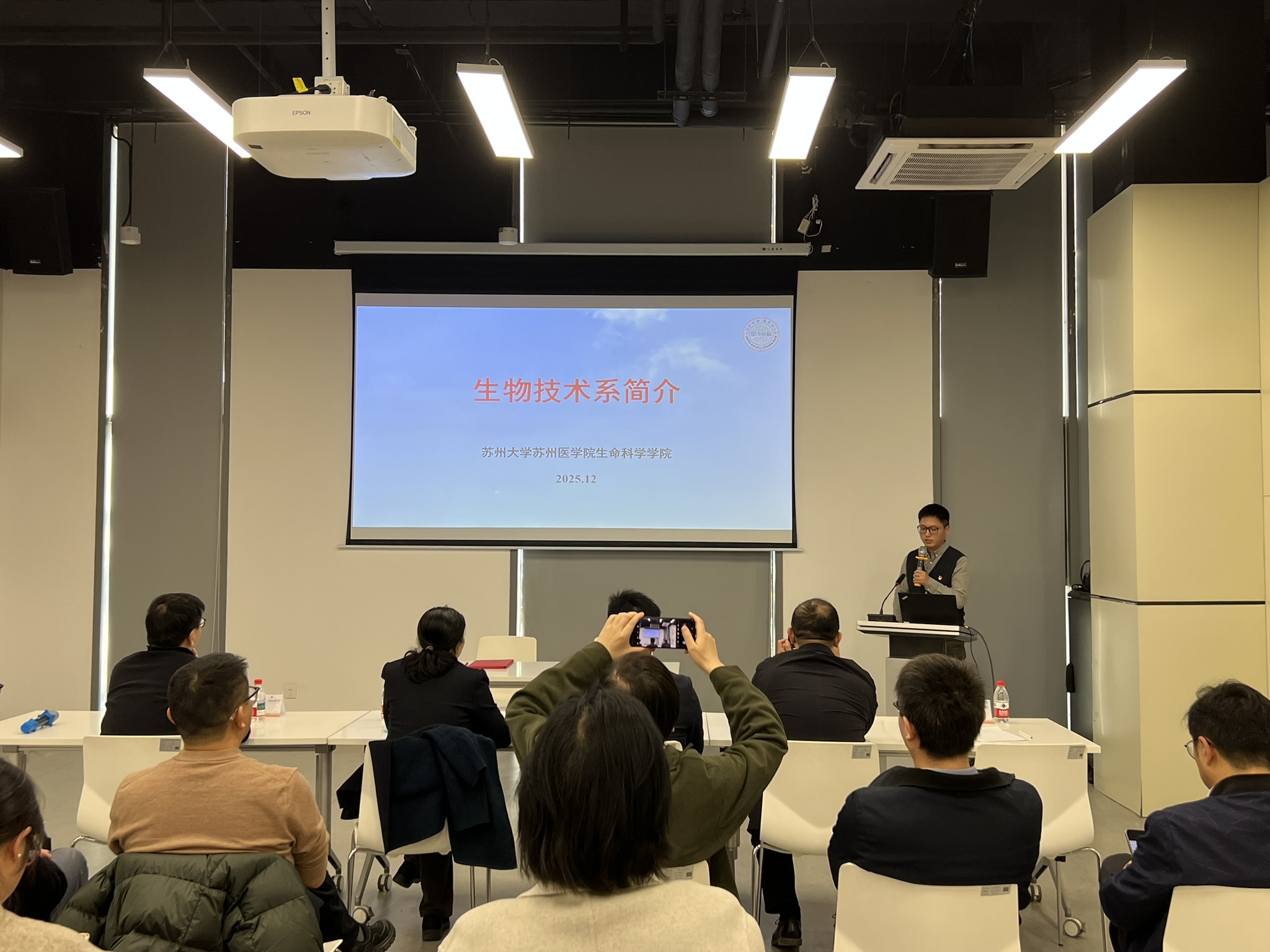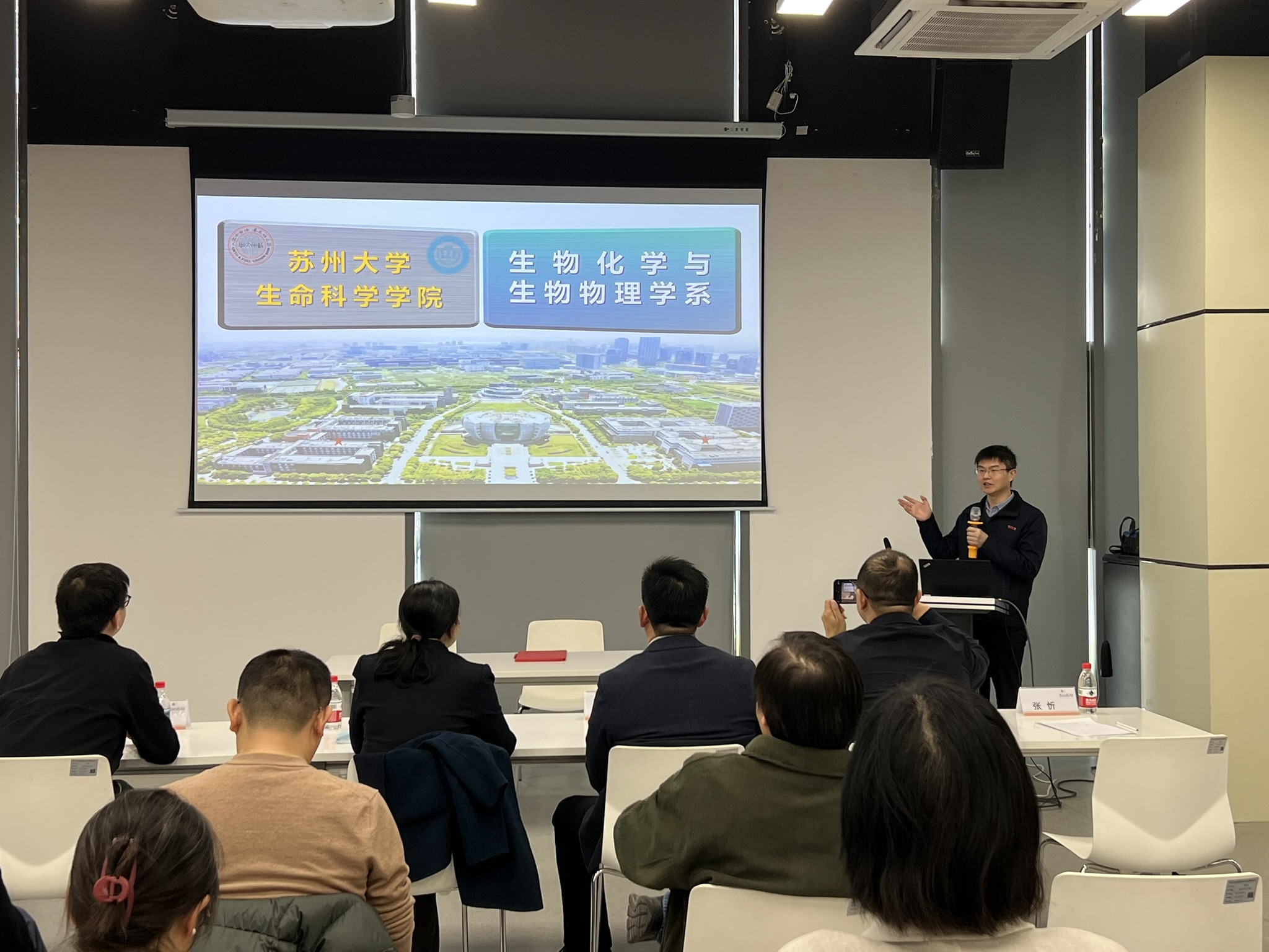 签约仪式后,生命科学学院副院长苏雄介绍了学院整体发展情况,院长助理张乐帅分享了学院在产学研合作方面的成果与规划。生命科学学院党支部书记代表肖飞和教授代表洪宇植、王家昌分别就学系研究方向、科研亮点和转化优势进行了介绍与成果展示。