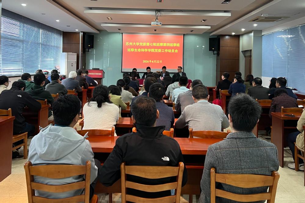 根据校党委统一部署,2026年4月22日,苏州大学党委第四巡察组巡察生命科学学院党委工作动员会议在独墅湖校区703号楼3502会议室召开。第四巡察组全体成员、生命科学学院党政领导班子及全体教职工参会。生命科学学院党委书记许继芳主持会议。