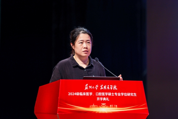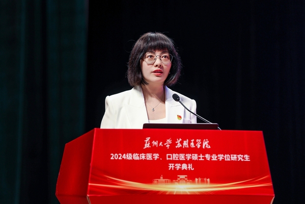 苏州大学附属第一医院教育培训处处长祁加俊从临床专硕研究生培养实施方案、住院医师规范化培训过程管理、临床专硕研究生培养环节要求三个方面介绍了新生进校后需要完成的理论、实践、科研的各项任务。他表示,临床专硕的培养目标是将同学们培养成为具有良好职业素养,思想、业务、作风“三过硬”,能独立、规范承担本专业常见多发疾病诊疗工作的临床医师。