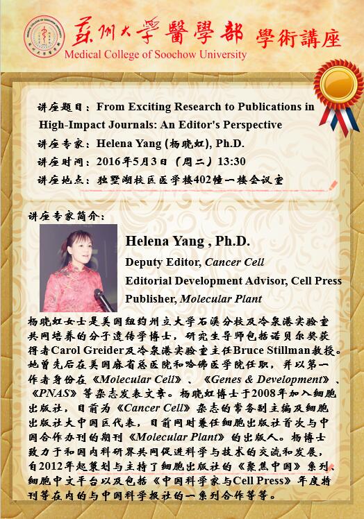 学术报告【5月3日13:30 医学楼402-1楼会议室】