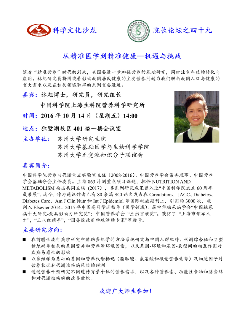 基础医学与生物科学学院院长论坛之四十九【10月14日14:00 独墅湖校区401楼一楼会议室】