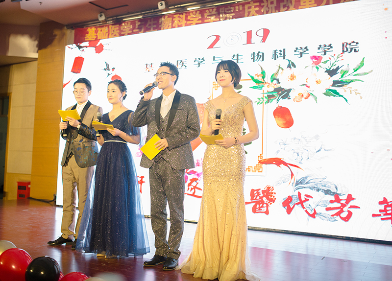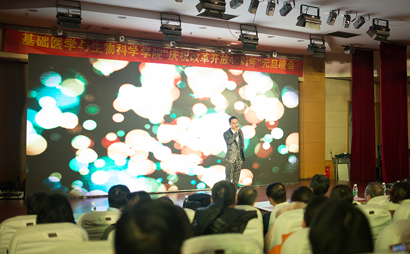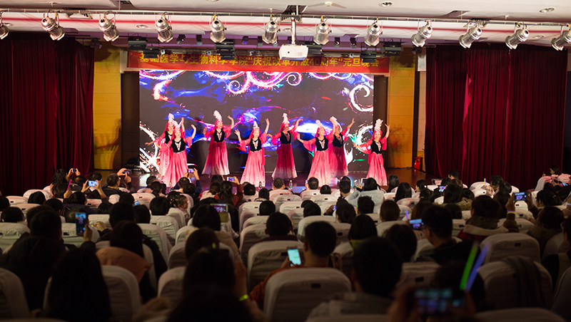 12月28日18:30,我院于医学楼四楼报告厅举行“庆祝改革开放40周年”元旦晚会。校党委办公室主任薛辉,党委研究生工作部部长吴雪梅,党委宣传部副部长程晓军,研究生管理办公室主任赵一强,校医院院长朱旻,医学部副主任苏雄,我院院长高晓明、党委书记沈学伍、副院长戈志强和杨雪珍等应邀出席晚会,我院约300名师生参加晚会,现场座无虚席。晚会以“研途逐梦,医代芳华”为主题,分为三个篇章。
