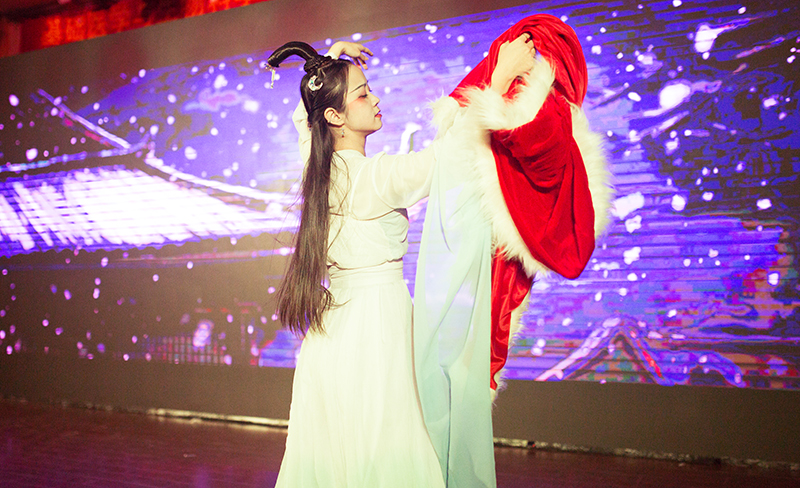 随后,充满青春活力的开场舞拉开了晚会的帷幕。朱磊带来的《遥远的她》,动听的旋律勾起了无数人的回忆,让人沉浸其中;老师们带来了新疆舞蹈《欢乐的跳吧》,异域的独特舞姿伴随着欢快的音乐,令大家大开眼界,更是将全场火烈的气氛瞬间点燃;邱韵霖和方媛表演的相声《诗词歌赋》,两人诙谐的语言引得同学们哄然大笑。串烧舞蹈《麻婆豆腐》,节奏轻快,赏心悦目。小提琴独奏《大鱼》,优美的旋律引人入胜。歌曲串烧B-Box与《BINGBIAN病变》的结合、《魔鬼中的天使》等轮番上场,或浪漫温馨,或轻快悠扬,或活泼动感,风格各异,变幻多姿。由同学们自编自导的小品《新西游记》以风趣幽默的动作、诙谐调侃的语言令在场观众捧腹。李逸带来的《亲爱的,那不是爱情》,清脆且饱含深情,引得大家轻轻地跟着哼唱。舞蹈《Boom Clap》在女生们灵动身姿的演绎下,更是将晚会推向了高潮,她们深情款款的歌声、默契的表演,引来了无数同学的掌声和欢呼声。舞蹈《昭君》以曼妙优雅、婉约优美的舞姿吸引了在场观众的眼球。沈亚波带来的单人串烧《So,whatever》,那独特的音质一次又一次激荡起观众心中的澎湃。诗朗诵《破茧》,豪迈奔放,意境深远,更是传达出了有国才有家的家国情怀。