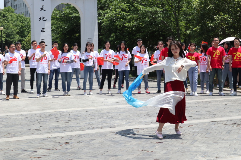 为庆祝新中国成立70周年暨苏州大学校庆119周年,基础医学与生物科学学院党委组织学院研究生会、研究生党小组,开展了“向祖国表白”的快闪活动。活动于5月20日上午11:30,在苏州大学独墅湖校区隆重举行。学院100余名师生参加,以小提琴演奏、歌曲联唱、舞蹈等多种艺术表现形式串连快闪。