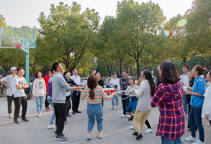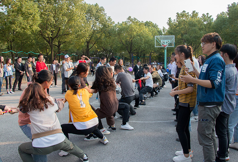 进入积分游戏,同学们依次报号分组,老师们随机加入,按组竞赛。“活力跳起来”,“欢乐大接力”,“同心鼓”以及最后的友谊赛“拔河”,每个项目都充分展现了大家的配合能力,既考验了大家的体力,又体现了大家的智慧。现场的欢呼声、尖叫声,此起彼伏,气氛被推向高潮。