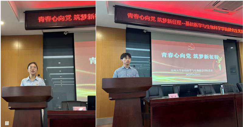 2020级博士生党员周丽婷、2021级博士生党员靳二锁作为研究生党员代表作交流发言。他们表示将在以后的工作、学习中持续深入学习习近平新时代中国特色社会主义思想,积极发挥党员的先锋模范作用,不辜负党的期望、人民期待和母校嘱托,担当起新时代中国青年的使命,以青春之我,奋斗之我,立大志、明大德、成大才、担大任,展现青春激情活力,为祖国建设添砖加瓦。