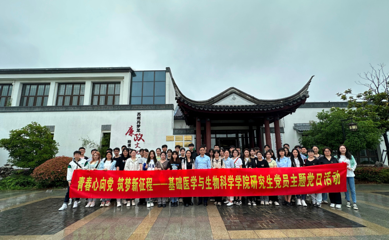 为深入开展学习贯彻习近平新时代中国特色社会主义思想主题教育,进一步强化学生党员身份意识和责任意识,引导全体研究生党员进一步坚定理想信念,以更加饱满的热情和昂扬的斗志投身新时代中国特色社会主义伟大事业中,65日,基础医学与生物科学学院党委组织全体研究生党员赴冯梦龙廉政文化培训中心开展“青春心向党,筑梦新征程”主题党日活动,同时为2023届毕业生党员送上“红色行囊”。会议由学院党委委员、副院长杨雪珍主持,党委书记何峰讲授专题党课,行政办公室党员代表、研究生党员参加活动。