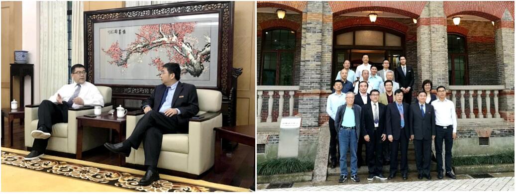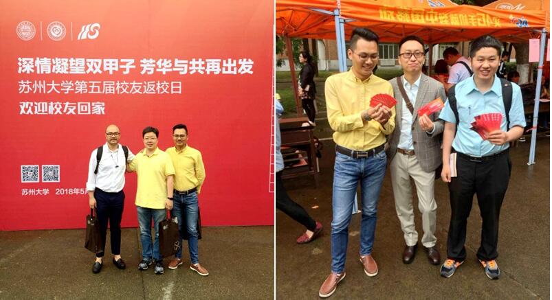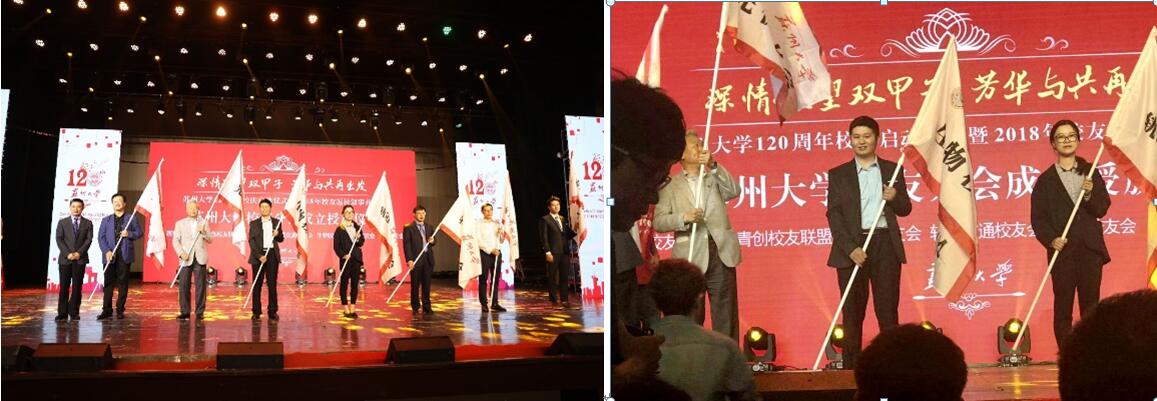 2018年5月19日,苏州大学天赐庄校区细雨蒙蒙,草木郁郁葱葱,往昔的校舍静谧,尽显了烟雨江南的万种风情。早上8点,数千名校友陆续从各地赶回母校参加苏州大学第五届校友返校日系列活动。存菊堂外,三两携手,谈笑言欢;独墅湖畔,莘莘学子,共话未来。 9:30,苏州大学党委书记、苏州大学校友总会副会长、苏州大学教育基金会理事长江涌在本部红楼会议中心与韩国校友会、上海校友会、北美校友会、生物校友会等校友代表交流。江涌书记希望“以后校友之间沟通交流,序长不序职”;江书记听取了上海校友会等校友工作的介绍汇报,并表示各位校友要积极为校友发展而多做努力。生物校友会秘书长韩金星、副会长朱志明参与了交流。江书记等校领导与校友代表在会议中心前合影留念。 10:00,学校在存菊堂为校友们准备了一场特别的欢迎仪式《苏州大学120周年校庆启动仪式暨校友叙事音乐会》。精心筹备的音乐会上英杰荟萃,每一个跳动的音符和舞步叩响了校友们内心的悸动,激起了校友心灵深处思念母校的万千思绪。音乐会期间,熊思东校长为生物校友会等新成立的7家校友会授旗并合影留念,2001级生物技术专业校友韩金星代表生物校友会上台领旗。