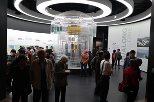 在秦山核电站展区,讲解员给大家详细介绍国家决策、建设到秦山核电站一期的规划、设计和施工的整个过程。秦山一期投产盈利后,再设计和建设核电二期、三期及方家山核电扩建工程,一步一个脚印,循环发展。目前,方家山核电扩建工程完工,秦山核电站满负荷年发电量可达到500亿千瓦时。有位老同志激动地说“我还清楚记得,1992年庆祝秦山核电站并网发电,学校食堂给师生每人加了一块大排呢”,人群里迸发出一阵欢笑。