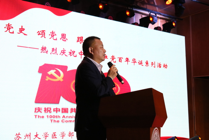 2021年6月10日晚,基础医学与生物科学学院“学党史、颂党恩、跟党走”庆祝中国共产党百年华诞系列活动在独墅湖校区601号楼音乐厅隆重举行。学校党史学习教育巡回指导第2小组组长、离退休工作部部长余宏明;医学部党工委副书记吴德建;学院院长吴嘉炜、党委书记沈学伍,副院长张洪涛、陶金、杨雪珍以及各学系系主任、党支部书记和全体研究生参加活动。