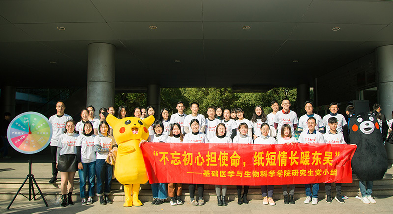 由基础医学与生物科学学院研究生党小组举办的“不忘初心担使命,纸短情长暖东吴”主题党日活动于2019年11月20日圆满举办。此次活动作为我院全体学生党员“四重四亮”活动的一部分,通过卡片传情,向我校学子传递冬日暖意。从“党员亮身份”出发,以“担当亮作为”行动,明确党员身份,提高党员身份自觉性。