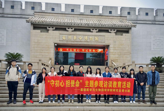 2019年11月13日,生物化学与分子生物学系和生物科学系研究生党小组联合开展了以“守初心,担使命”为主题的参观苏州市革命博物馆和苏州市初心馆的主题党日活动。