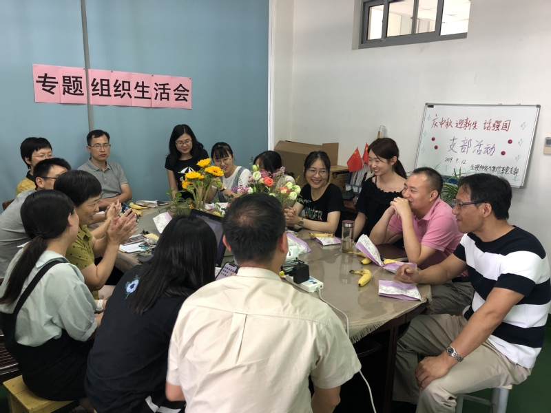 为不断推进、增强支部思想政治建设,欢迎新生党员入支部,在庆祝中秋佳节到来之际,生理学与神经生物学系党支部于9月12日中午隆重举行了“庆中秋、迎新生、话强国”主题党日活动,学系主任陶金老师、主任助理朱奇老师列席了支部活动。
