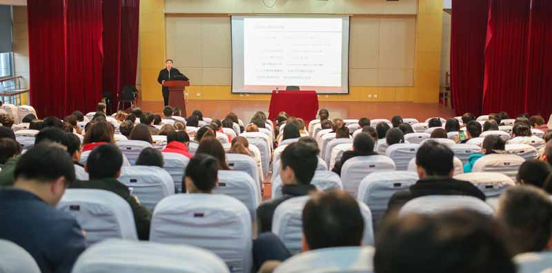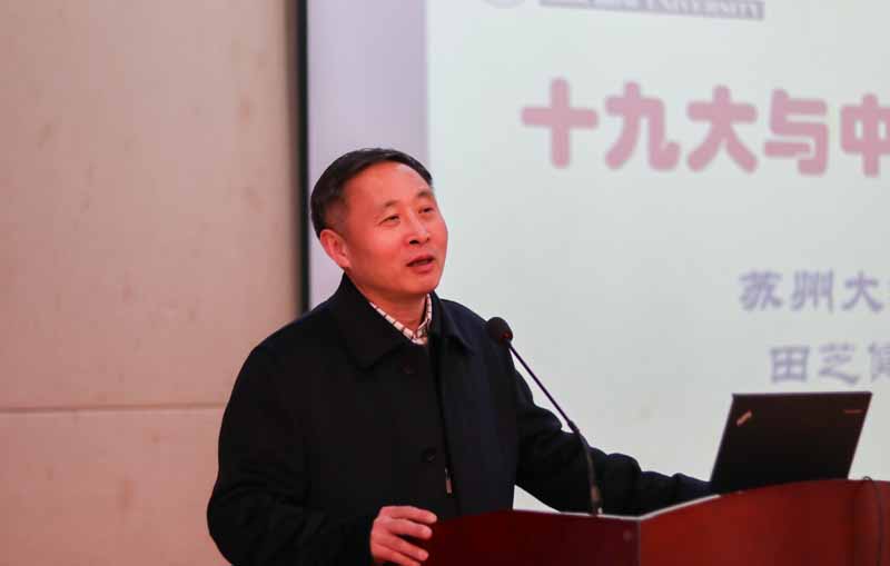 田芝健教授以“十九大与中国发展”为题,分别从历史方位的新判断,社会主要矛盾的新表述,行动指南的新成果,基本方略的新提炼,战略步骤的新安排,历史使命的新概括,党的建设的新要求,不足、困难和挑战的新诊断,贯穿新发展理念,发展社会主义民主政治的新部署,铸就中华文化新辉煌,民生和社会治理的新考量,共同体的新构想,强国强军强党的新追求等方面进行了详细阐述。田芝健教授指出,认真学习、贯彻党的十九大精神,特别是习近平新时代中国特色社会主义思想,要深刻领悟蕴含其中的丰富内涵、精神实质和实践要求,把思想和行动统一到党的十九大精神上来,在学懂弄通做实上下功夫,不忘初心、牢记使命、锐意进取、埋头苦干,为实现中华民族伟大复兴的中国梦贡献力量!