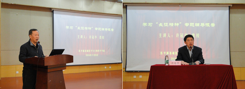 为纪念红军长征胜利80周年,继承和弘扬长征精神,激励广大党员积极发扬不畏艰险、勇于担当、甘于奉献的精神,立足本职工作、不懈奋斗拼搏,我院特邀马克思主义学院许冠亭教授,为大家带来学习“长征精神”专题辅导报告会。我院全体教职工、全体研究生党员及研究生班长参加了本次活动。会议由我院党委书记薛辉主持。