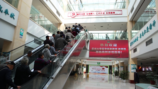 校友王浙东院长、谢峰副院长、原苏州大学附一院院长葛建一等热情接待了大家。王浙东院长用PPT给大家详细介绍了永鼎医院的建院历史、发展现状和管理特点。永鼎医院以强化管理服务,降低运营成本,来减少病患费用;以积极承担社会义务,作为医院品牌建设的路径,在“民营的基础上有经营”,医院得到了良性的发展。现在医院的场所、设备、人员都不错,医院只有把生存、收入和医院发展绑在一起,“唯有服务好,才有忠诚患者”。尤其让大家觉得意外的事,王院长尤其谈到了作为民营医院(企业)更加注重党建,以党建促院建,努力“把党员培养培养成骨干,把骨干发展成党员”。并打造了“百名医生下基层”“天使先锋岗”两个党建品牌。