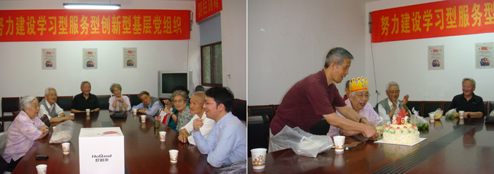 王尔东简要介绍了学院2014年各方面工作情况,对老同志为学校发展作出的贡献表示感谢,并表示今后将继续高度重视离退休老同志工作,在学校党政领导及离退休工作处的指导下,尽学院所能为全体退休老教师们老有所养、老有所学、老有所乐、老有所为创造条件并做好相应服务工作,也衷心希望各位老同志一如既往地关心、支持学院的改革与发展。王尔东、杨雪珍为寿星们送上了生日蛋糕和寿辰祝福,也带去了全院教师对老同志的祝福,祝愿老前辈们“青松不老,古枫吐艳,晚菊傲霜,漫步人生夕阳红”。