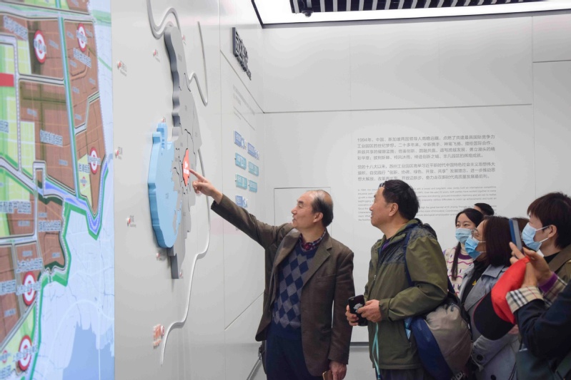 在热烈充分的交流和讨论后,全系师生乘坐大巴来到苏州工业园区发展中心参观学习。苏州工业园区发展中心位于园区的发达地段,高楼林立间,具有浓郁的现代化气息。展示中心共分两层,一层包括概述、创新发展、协调发展、开放发展、绿色发展、共享发展和党建引领等板块,细数了苏州工业园区建区以来的经济社会与城市建设的主要成就。二层展示了苏州工业园区的总体规划、重点片区规划,包括规划模型、数字沙盘等,其中包括与学院发展息息相关的生物产业以及医疗卫生规划。2019年起,园区成为中国(江苏)自由贸易试验区苏州片区,正如展厅内部所写,园区的发展建设勇立改革开放潮头,当新时代发展先锋。可以说如今的苏州闪耀瞩目,“全球竞争力城市25强”、“世界特色魅力城市”、“中国大陆最佳地级城市第一名”、“国家首批历史文化名城”等国际、国内荣誉不胜枚举,优美的居住环境,大量的就业机会,充满活力的城市氛围。然而,这片人间天堂曾经饱受血吸虫病肆虐。1955年,在党中央、国务院消灭血吸虫病的号召下,全党动员、全民动手,开展了波澜壮阔的“血防群众运动”,在“积极防治、综合措施、因时因地制宜”基本方针策略指导下控制了血吸虫病的流行。